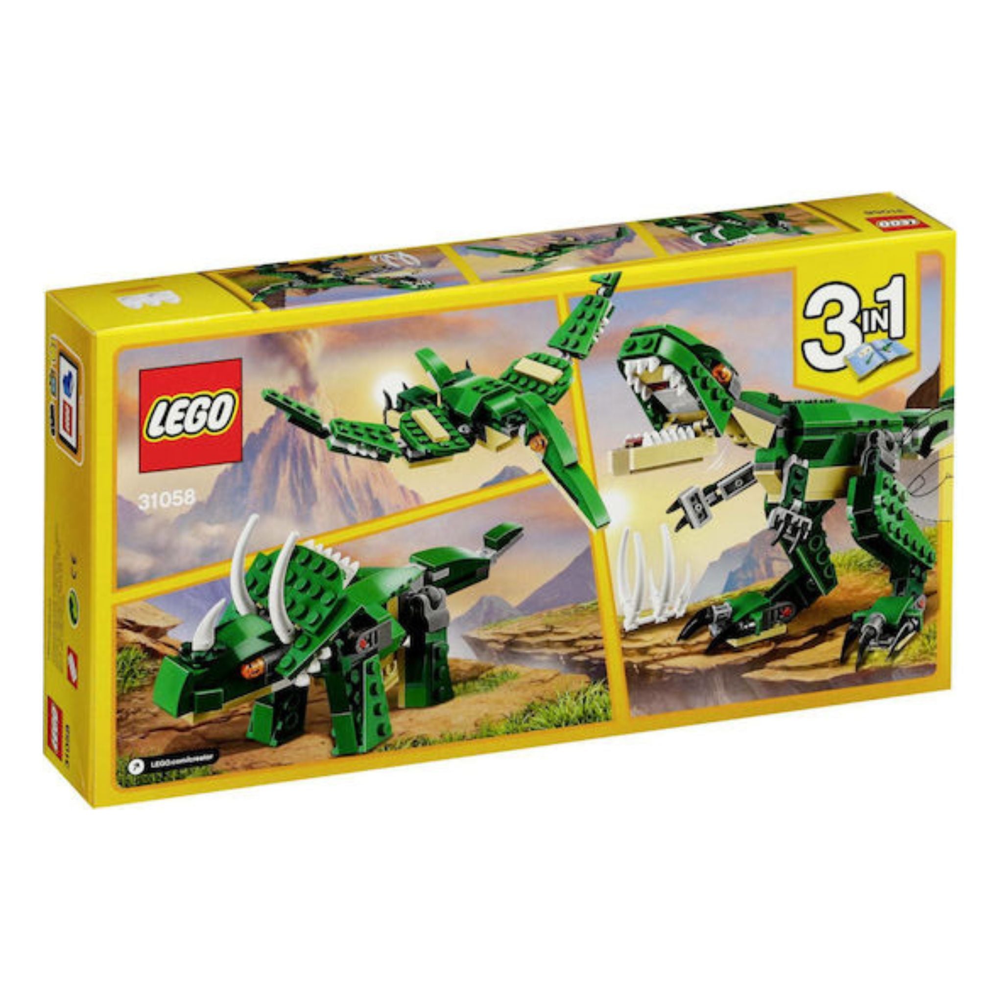 Κάνε τη γη να τρέμει με αυτόν τον μανιασμένο T. rex, σε σκούρο πράσινο και μπεζ χρώμα και με φωτεινά πορτοκαλί μάτια. Άνοιξε το στόμα του για να αποκαλύψεις τα κοφτερά σαν ξυράφια δόντια του, δώσε μια πόζα στα νύχια του και κούνησε το κεφάλι και την ουρά του. Αυτό το σετ περιλαμβάνει επίσης τα απομεινάρια του τελευταίου θηράματος του T. rex! Ανακατασκεύασέ το για να δημιουργήσεις άλλους Πανίσχυρους Δεινόσαυρους - έναν δυνατό Τρικεράτοπα ή έναν τρομακτικό Πτεροδάκτυλο.