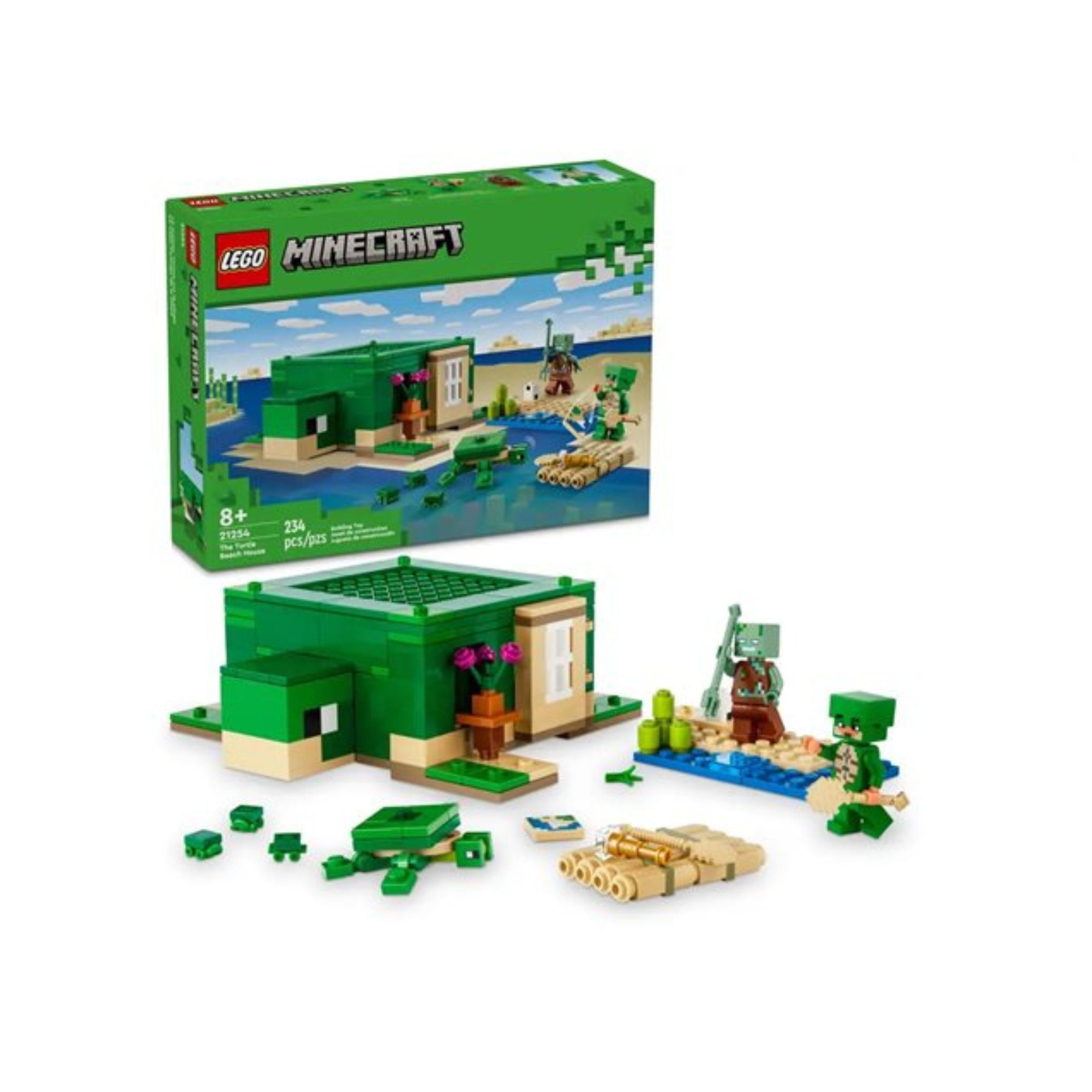 Κατασκεύασε το σετ LEGO The Turtle Beach House για τον Πολεμιστή με Εμφάνιση Χελώνας, γεμάτο με όλα όσα χρειάζεται για φαγητό, ύπνο και κατασκευές ενώ ζει σε έναν νησί Minecraft® στο Οικοσύστημα Ωκεανού. Στο εξωτερικό, υπάρχει μια παραλία όπου μπορείς να ταΐσεις τη χελώνα με θαλάσσια βλάστηση ενώ φυλάει τα αυγά της. Όταν όμως εμφανιστεί ένας Πνιγμένος που κρατά τρίαινα, πρέπει να τον απωθήσεις και μετά να ανέβεις στη σχεδία από μπαμπού και να σαλπάρεις για την επόμενη περιπέτειά σου.